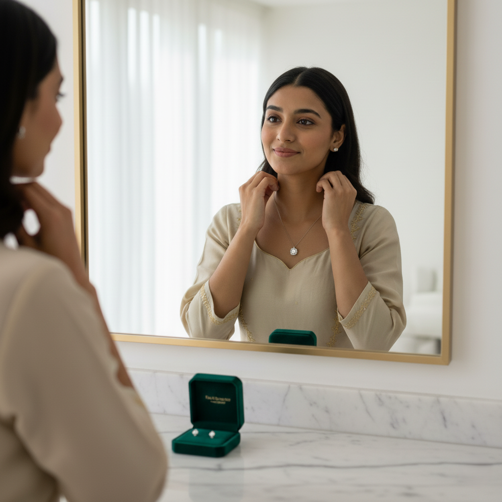 Experience the luxury of trying exquisite diamond jewelry in the comfort of your Chennai home. Our personalized service brings elegance to your doorstep.